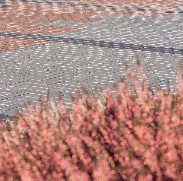 Rådhusplassen er basert på ‘shared space’-prinsippet, der gående og kjørende deler arealet. Et graduert belegningsdekke markerer kjøremønster og danner naturlige oppholdssoner. Tverrstripene fra den eksisterende delen av rådhusplassen videreføres over rådhusplassen og syr sammen nytt og gammelt. Blå-grønne løsninger i forlengelse av rådhusplassen, som regnbed, håndterer overvannet, mens variert vegetasjon, møblering og mønster i belegg gir plassen liv. Plassen er universell utformet og prosjektert uten vertikale kanter, og flyttbare elementer sikrer fleksibilitet for arrangementer.